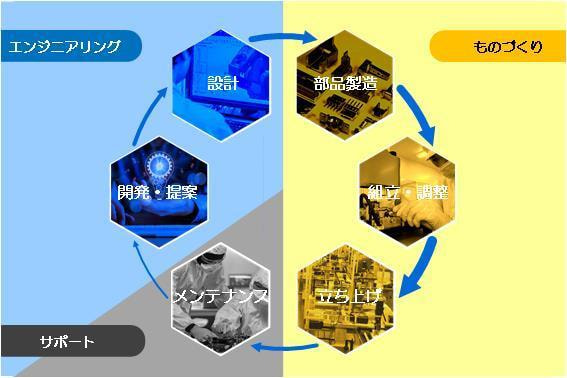 自動化・省力化機器の設計・調達・組立・出荷、メンテナンスまでの一貫生産体制